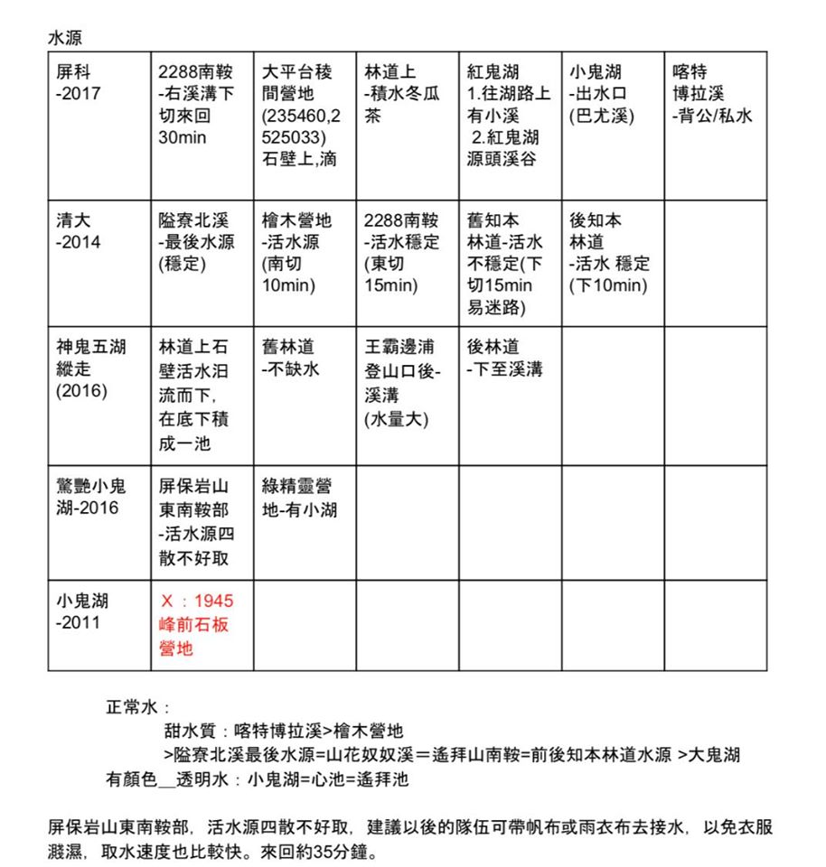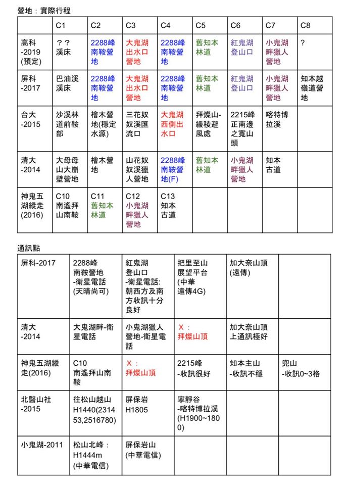 108.0112~0122. 總結 (目前網路上僅有本社這份紀錄,但或許有前人已走過,低調的神人不在少數,難度5顆星,請小心服用,下圖有整理過的通訊點及水源資訊)