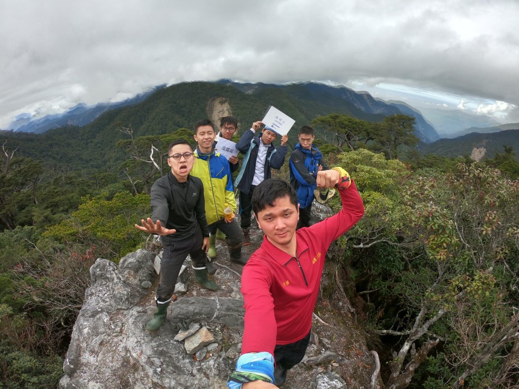 更多的是雨,如春筍般不絕,會呼吸的樹是這天的水源,領隊晉維拿著碗不浪費一滴,迫降在屏保岩上很特別,三角點旁有小夫的遺物,記得回去拿,百年後化為鑽石。