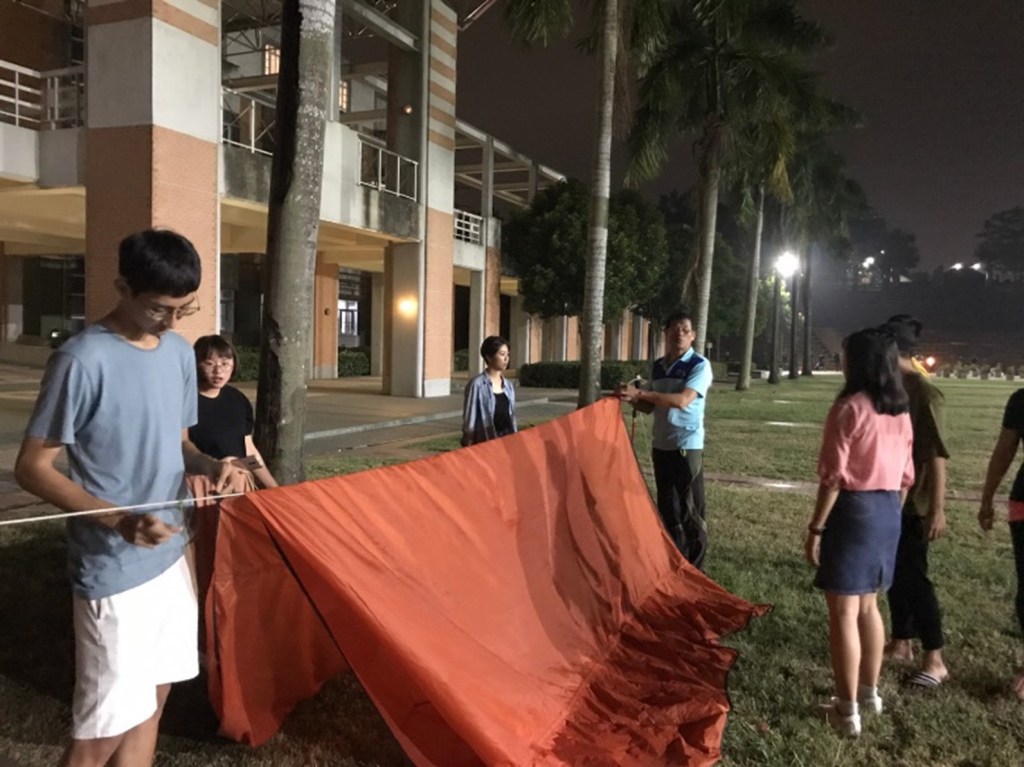 輔導老師教導我們搭設炊事帳