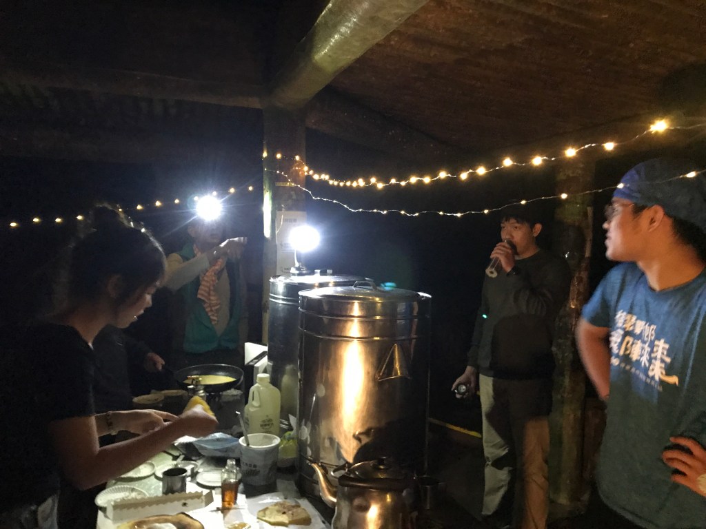 晚上的紮營最讓我深刻,光場務的控制讓我忙到忘記吃飯,不過也有不少學弟很勤奮,一直撿事情做,隔天也幫了我們加快拔營的腳步。晚餐我們帶的很多元,各組大顯身手展現廚藝,不過那天真的頗累,大家十點多就熄燈休息了。