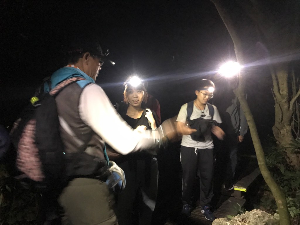 第一次參加夜遊的活動,心裡很期待,但又有點擔心因為跟高科大社員不認識會有點尷尬沒有話聊,還好大家都十分友善沒有距離感,帶隊老師也非常親切,因為我的頭燈沒那麼亮就主動把他的超亮頭燈借給我!