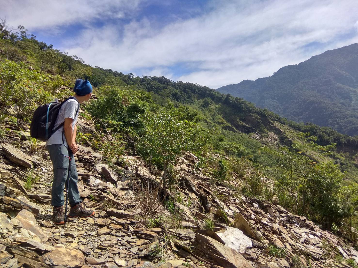 原訂昨日109/9/11單攻大母母山是中秋節活動的體訓,難度適宜且又能作為場地勘察(或許能舉辦登山體驗營)。不料體訓因眾多原因需停辦,但山野群夥伴還是想一探究竟,就照常出發。 以下是這次場勘狀況: 本次從高科大(第一校區)出發時間5:00,停車場出發時間8:40(天氣晴朗),抵達岔路口時間12:05,大母母回岔路時間13:30(路程有衝刺),回停車場時間16:15(沿路降雨)。 1.佳暮部落之後的路況不佳,碎石頭、崩掉的路很多,下雨天更不適合走(建議開車)2.6.6K停車場到行車終點,機車可以過去,省來回1小時3.崩壁大約五個左右,若不敢過,可能要花很多時間4.路況極佳、通訊良好,水源點很棒5.部分溪溝、植被潮濕要小心滑倒6.往大母母山原路崩塌,目前已開發新路,叉路口-三角點來回約2小時(輕裝)7.岔路口到三角點中後的路段,路徑不明顯,容易被劍竹、倒木、獵路混淆走錯,ㄧ走錯要對航跡、走回上個布條點確認8.營地豪華營地&大岩壁營地比較推9.整體上路是好走、輕鬆的10.有些路段有衝刺,實際時間約8小時(含走林道) 11.雨天經過石板、石頭會超滑,務必留意小心經過 12.第二個崩壁有超巨大虎頭蜂窩 結論:規劃兩天一夜的行程登山體驗營是頗適合的,但交通要格外留意。 3D路線軌跡https://ayvri.com/scene/15y00m31jx/ckf44uo5e00013t5qayjoyisp